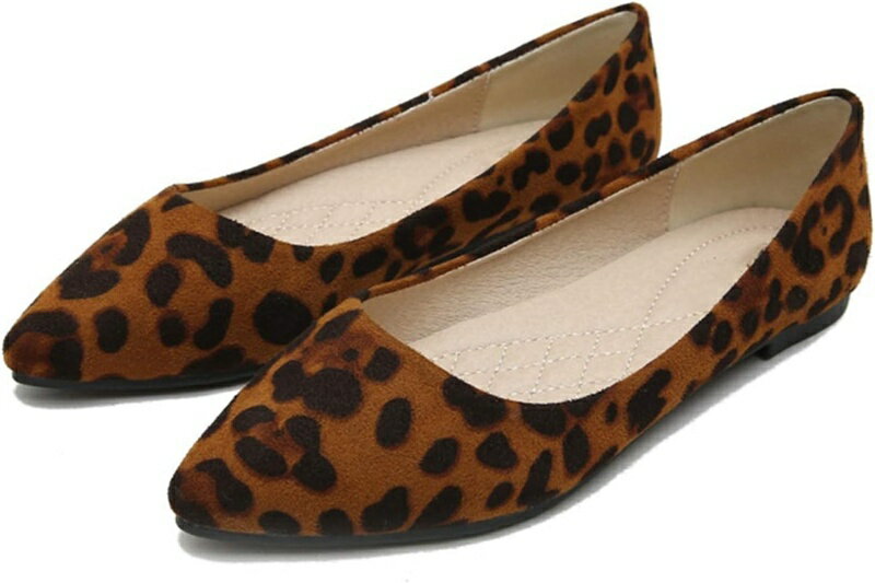 バレエシューズ レディース ポインテッドトゥ フラットヒール スリッポン 浅履き ヒョウ柄 スエード・・・