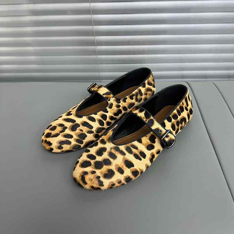 靴 レディース メリージェーン バレエシューズ ブラウンヒョウ柄 グレーヒョウ柄 合成皮革 バックル・・・