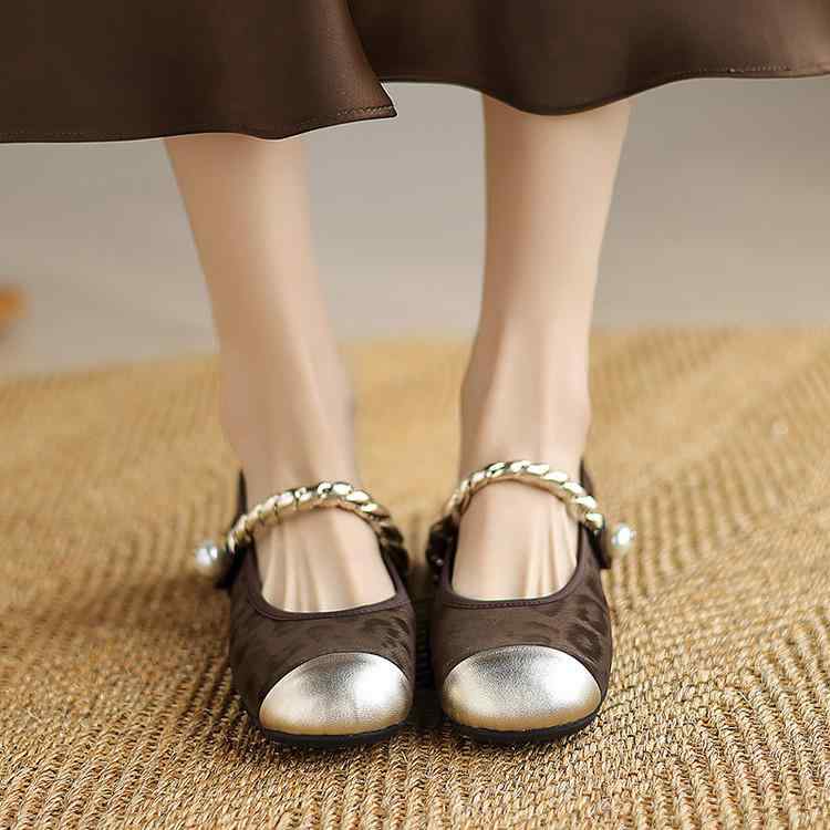 靴 メリージェーン バレエシューズ レディース 切り替え ヒョウ柄 ローヒール 浅履き ソフト 快適・・・