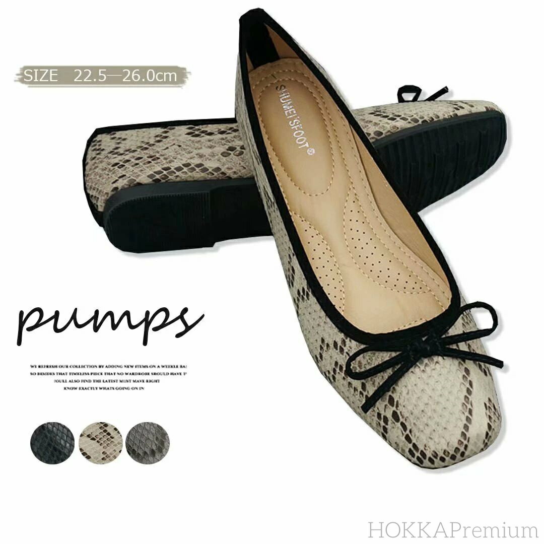【送料無料】上品つつもリボンが可愛らしさをプラス!ヒョウ柄 フラット パンプス バレエシューズ スク・・・