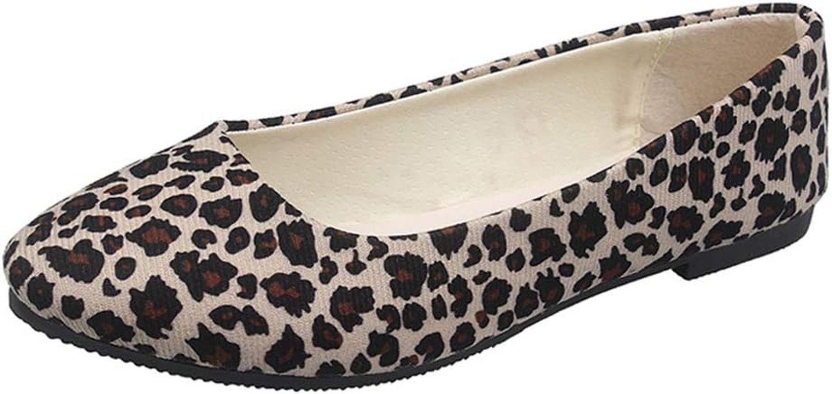 Allegra K フラット パンプス バレエフラット シューズ ラウンドトゥ レディース ヒョウ柄・・・