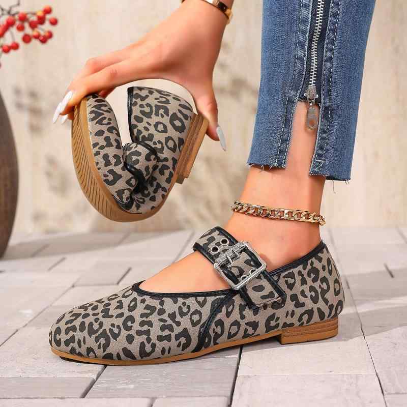 バレエシューズ レディース ヒョウ柄 ストラップ フラット ローヒール ラウンドトゥ 繊維 ぺたんこ・・・