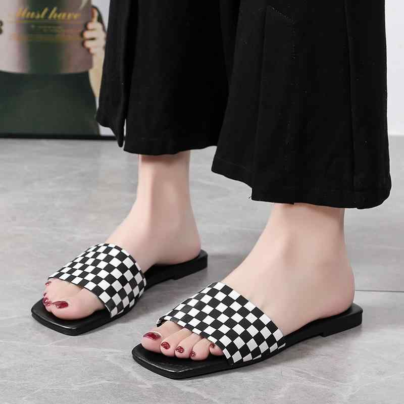 サンダル レディース フラット ぺたんこ ワンベルト チェック柄 千鳥格子 ヒョウ柄 ゼブラ柄 カジ・・・