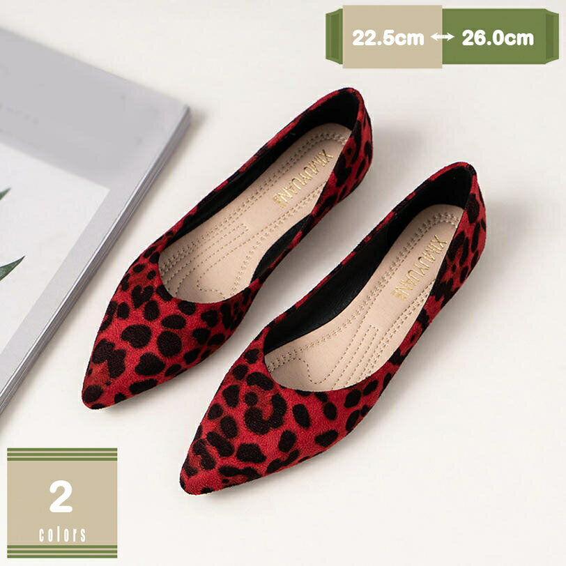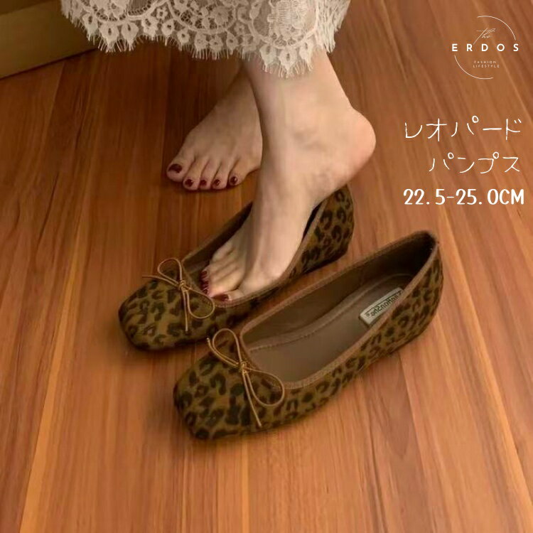 パンプス レオパード フラットシューズ ヒョウ柄 ぺたんこ 秋 秋冬 大きいサイズ かわいい ベージ・・・
