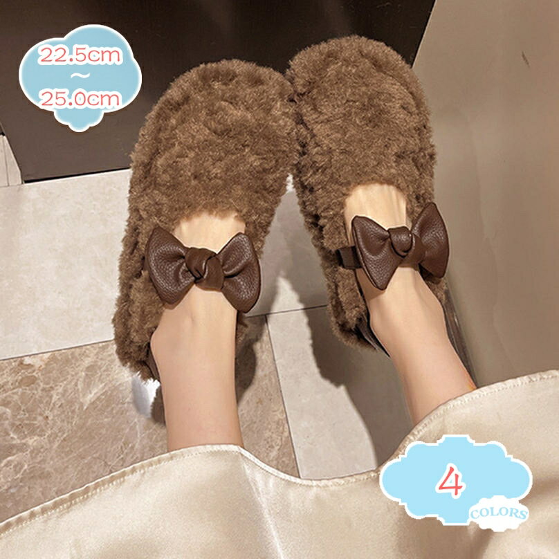 厚底 豹柄 リボン付き スリッポン もこもこ シューズ レディース アウトドア 秋冬 裏起毛 スノー・・・
