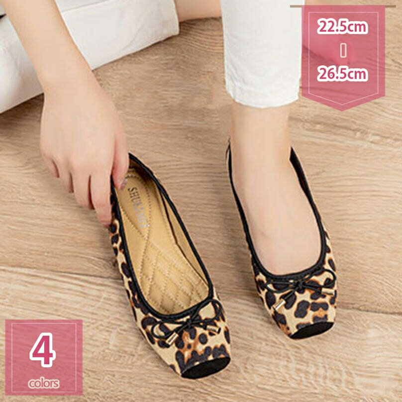 フラットパンプス フラットシューズ パンプス レディース リボン バレエシューズ レオパード スエー・・・