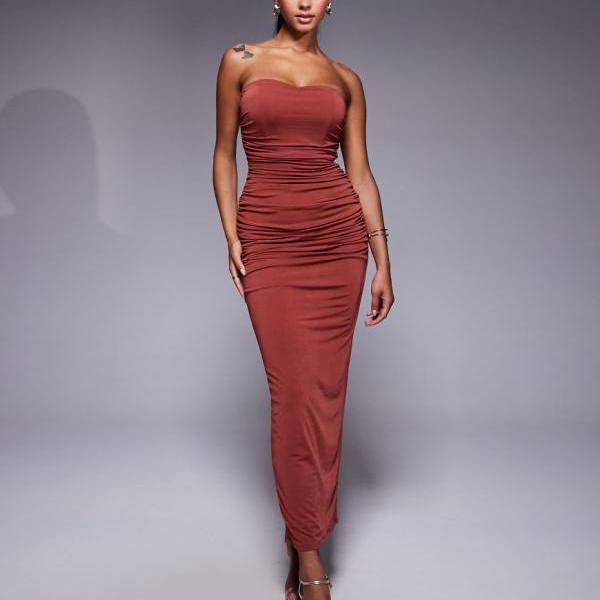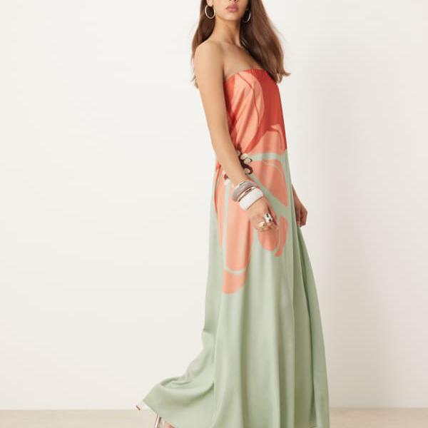エイソス ASOS asos ASOS DESIGN バンドゥ トラペーズ サテン マキシドレス(ミ・・・