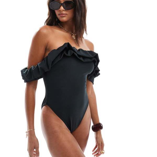 エイソス ASOS asos ASOS DESIGN オリビア バンドゥ ラッフル スカルプティング・・・