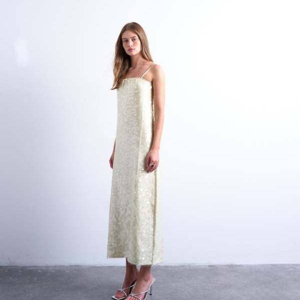 ASOS LUXE バンドゥコルセット ジャカード マキシドレス(ゴールド)フルスカート ワンピース・・・