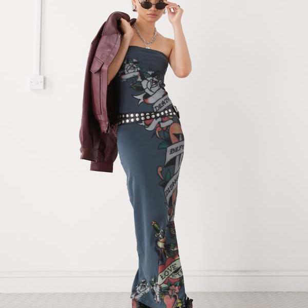 エド・ハーディーのスローガン付きバンドゥドレス(チャコール) トップス レディース 女性 インポート・・・