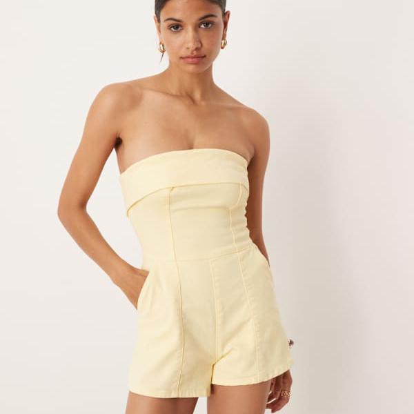 エイソス ASOS asos ASOS DESIGN デニムバンドゥフォールドオーバープレイスーツ(・・・