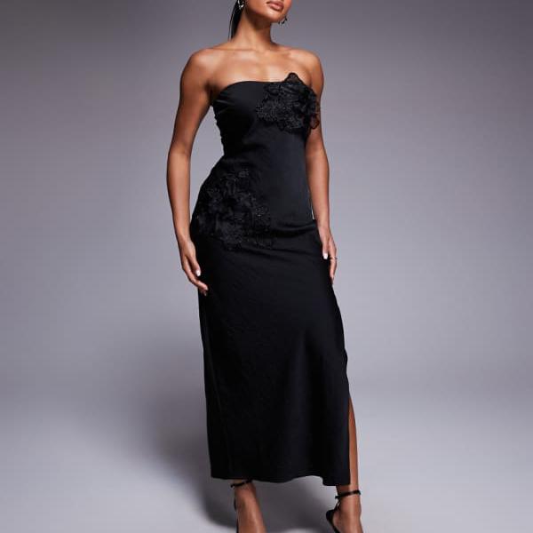 エイソス ASOS asos ASOS DESIGN バンドゥフラワーアップリケマキシドレス(ブラッ・・・