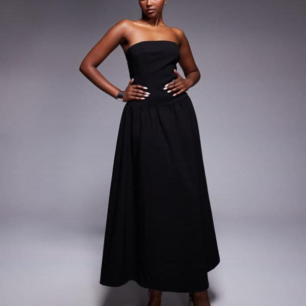 エイソス ASOS asos ASOS DESIGN サイドプリーツディテール付きバンドゥミニドレス・・・