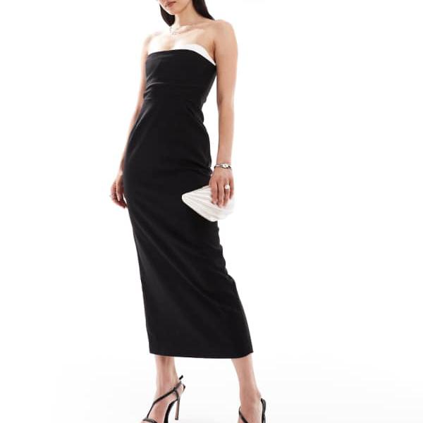 ビバリーヒルズのストラクチャードバンドゥコントラストゴデプリーツマキシドレス(ブラック&ホワイト) ・・・