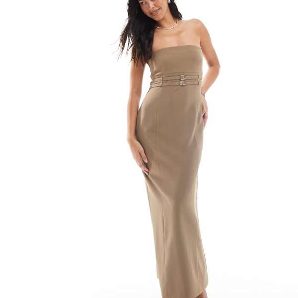 4th & Recklessのカーキ色のバックルディテールのバンドゥマキシドレス ワンピース レディ・・・