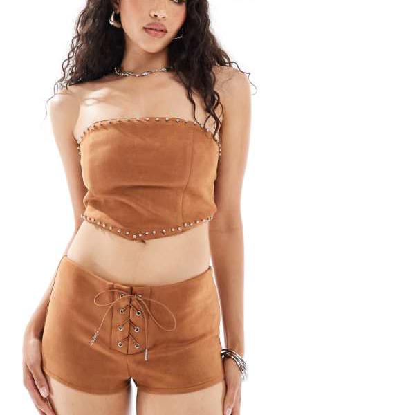 ニュールック New Look ニュールックのコーデュロイスエードバンドゥトップ(ブラウン) トップ・・・