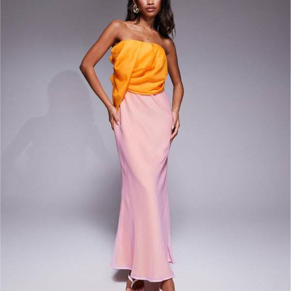 エイソス ASOS asos ASOS DESIGN バンドゥドレープバイアスマキシドレス(ピンクと・・・