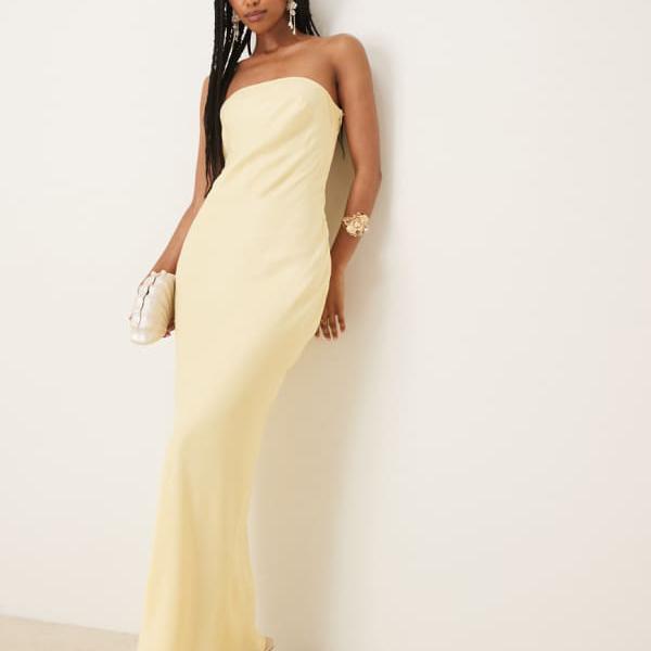 エイソス ASOS asos ASOS DESIGN サテンバンドゥバイアスマキシドレス(バターミル・・・