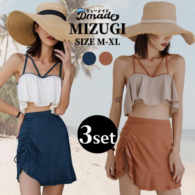水着 バンドゥビキニ 3点セット セパレート 体型カバー水着 レディース ビキニ バンドゥ フリル ・・・
