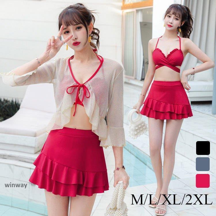 ファッション20代 リゾート韓国 スカート パレオ 花柄 ビキニ バンドゥ ハイネック 3点セット ・・・
