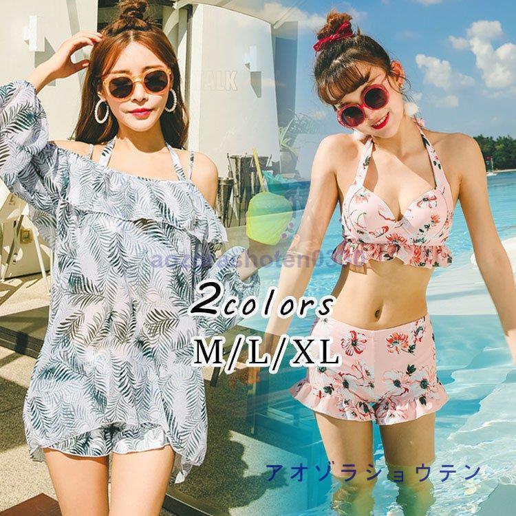 水着 レディース 体型カバー ビキニ 3点セット 花柄 ショットパンツ リゾート 小胸バンドゥ 水着・・・