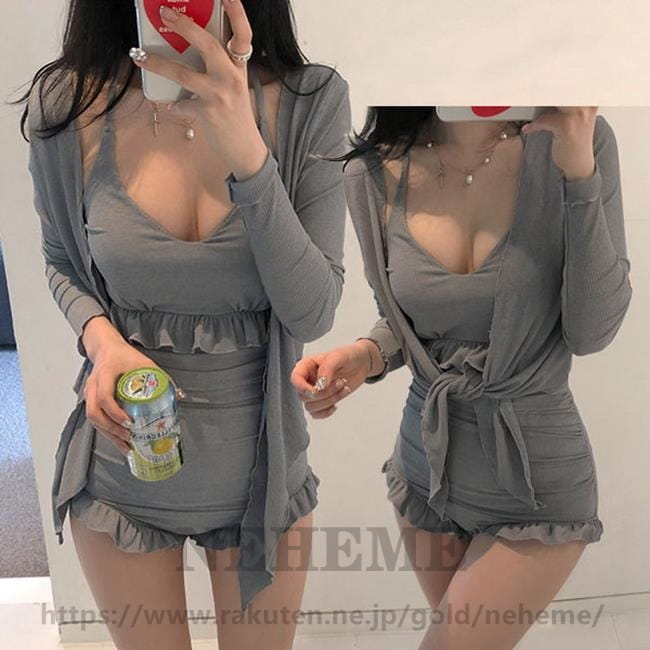 水着 レディース ブラック グレー フリル カーディガン セット ワンピース ボディスーツ 人気 か・・・