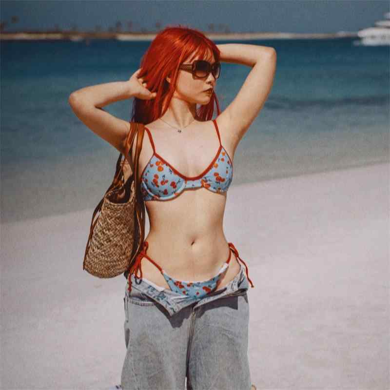 ビキニ 水着 レディース 夏 ビキニ 2点セット 総柄 韓国風 フリル バンドゥビ バストンドゥ 小・・・