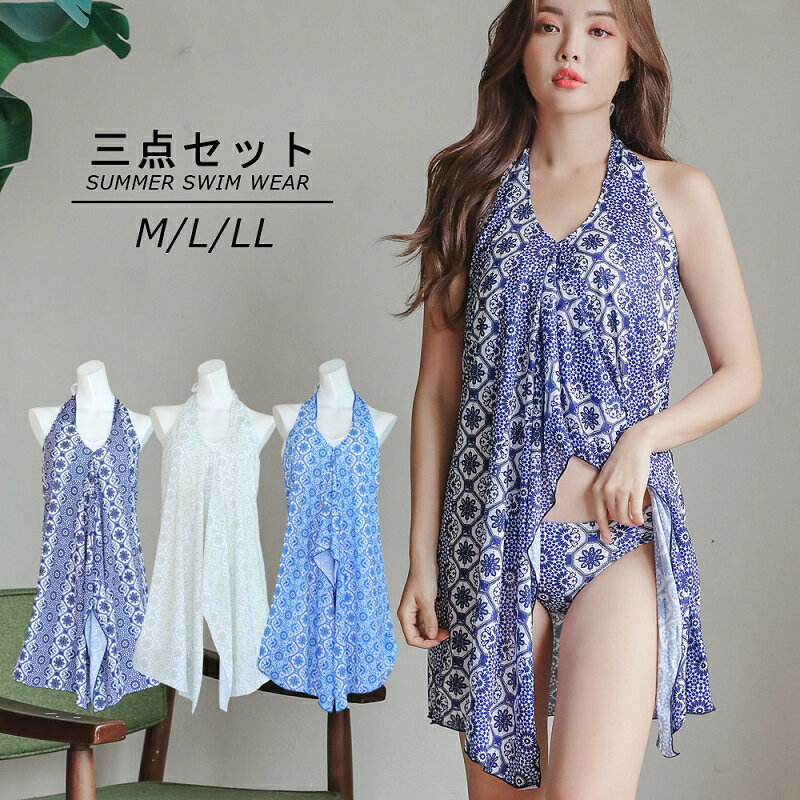 バンドゥ ビキニ 水着 レディース 体型カバー ハイウエスト フリル レースアップ 3点セット 韓国・・・