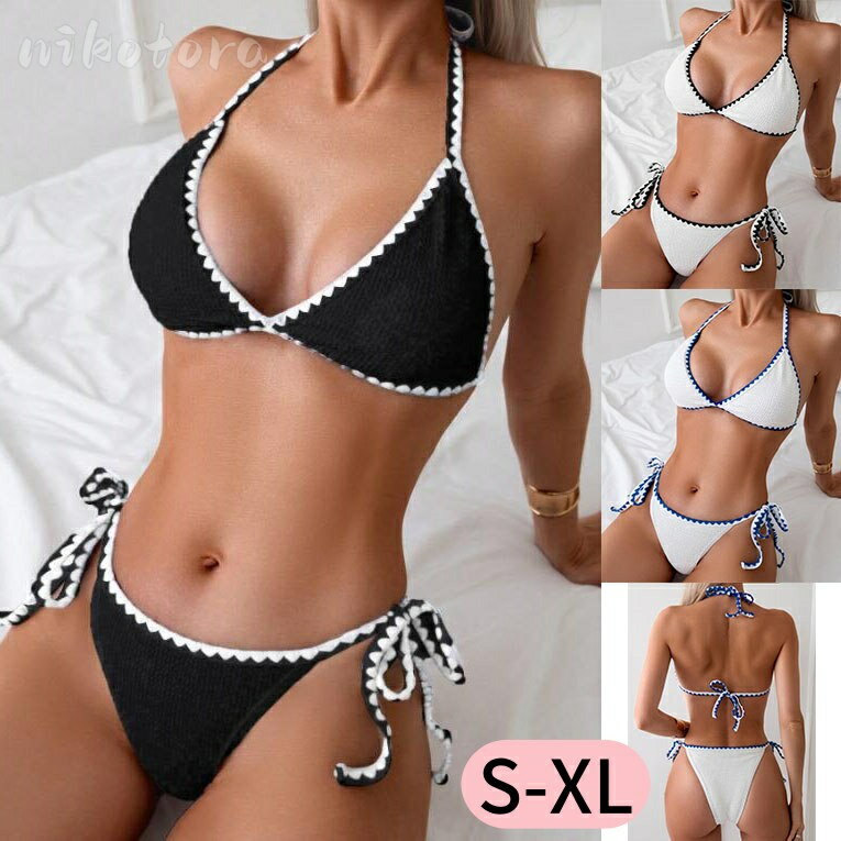 3色 レディース水着 バンドゥビキニ 上下セット ビキニセット 女性用 バスト盛れる ホルターネック・・・