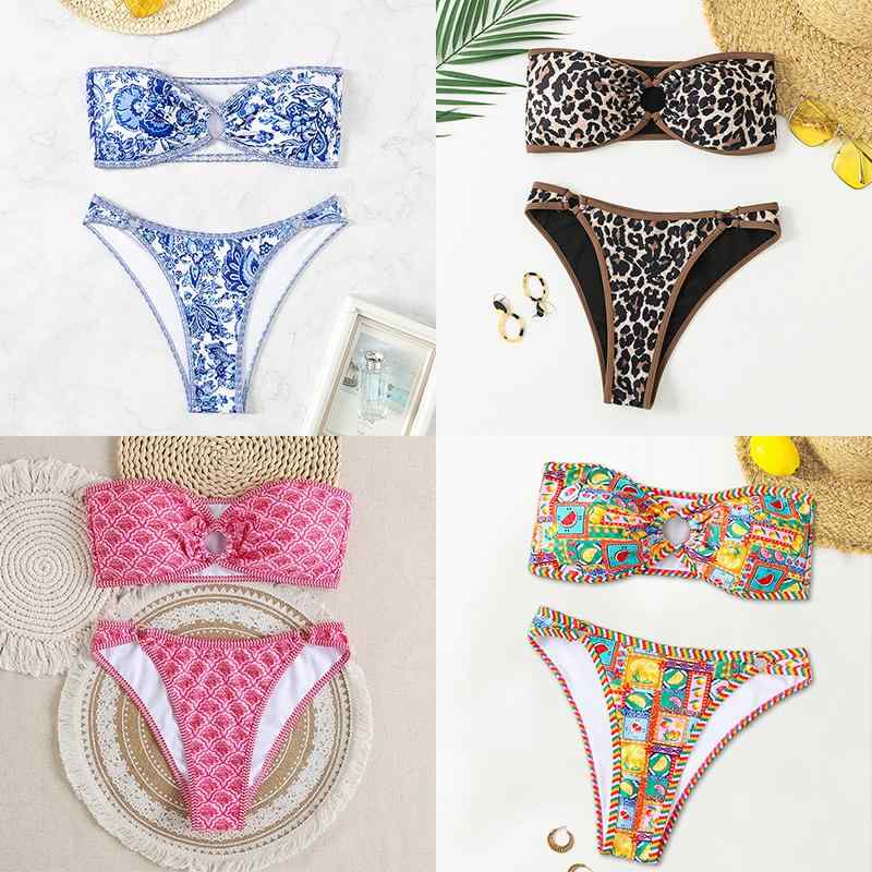 閉店セール!EMODA バイカラーリーフ バンドゥビキニ レディース 水着