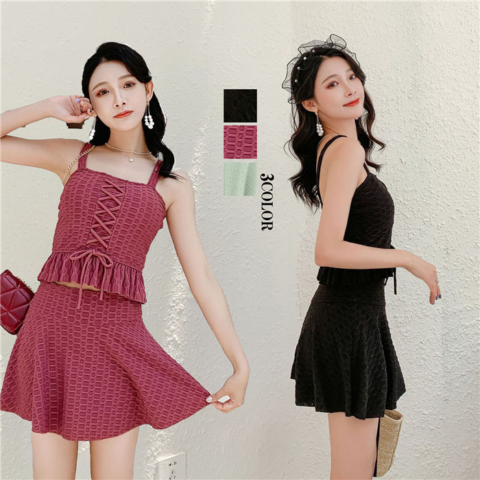 通販 ママ フリル フレア スカートセット 水着 タンキニ ビキニ レディース Bikini チェッ・・・