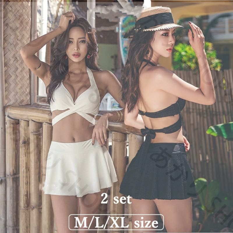 水着 盛れる ビキニ スカート セクシー レディース 温泉水着 クロスデザイン 2点セット 高品質 ・・・