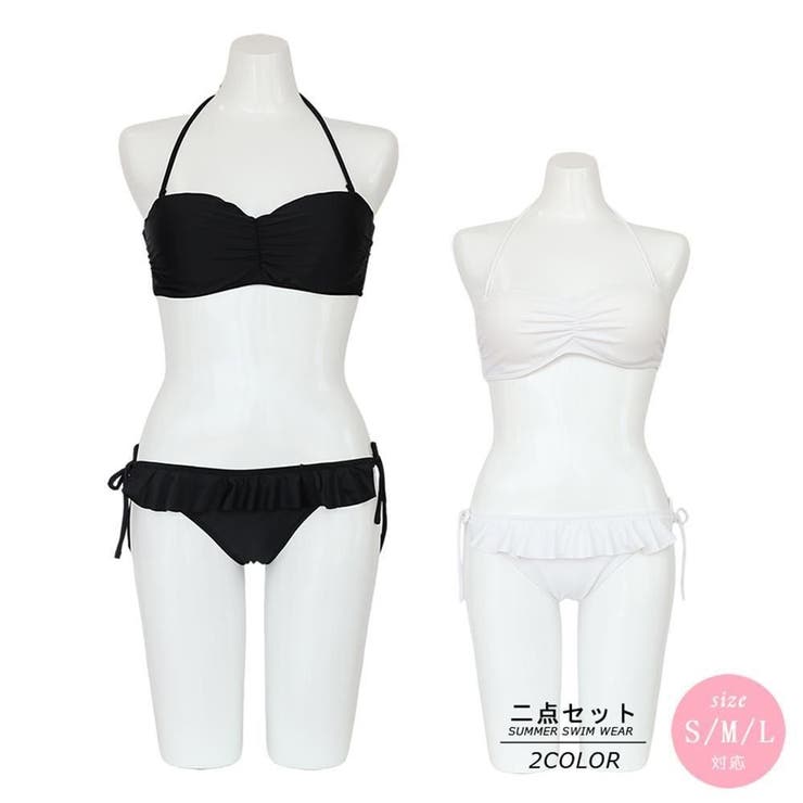 ビキニ水着 2点セット 体型カバー 水着 レディース 貝殻 パール バンドゥビキニ ホルターネック ・・・