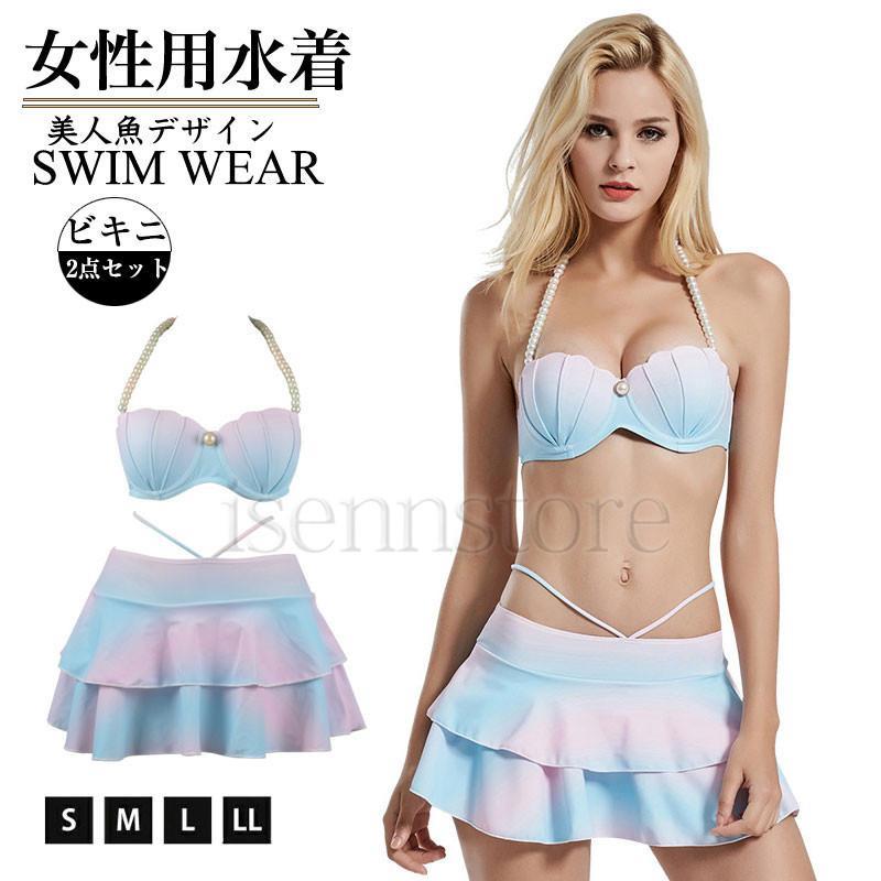水着 レディース 貝殻 パール バンドゥビキニ ホルターネック ワイヤー入り フリル 人魚 ビキニ水・・・