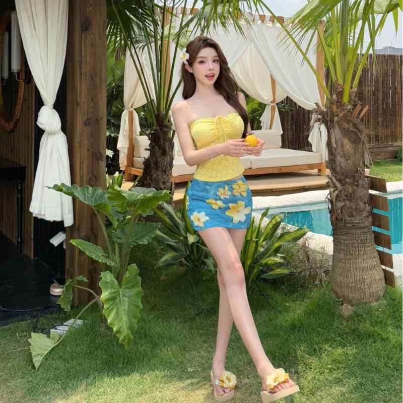 水着 レディース ビキニ バンドゥ 3D 花柄 無地 スイムウェア 体型カバー セパレート 盛れる ・・・