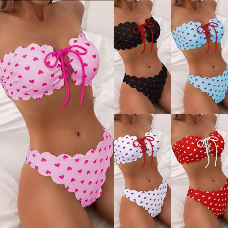 ビキニ レディース水着 夏 セパレート 胸パッド有り ワイヤー無し バンドゥ プリント 海 プール ・・・