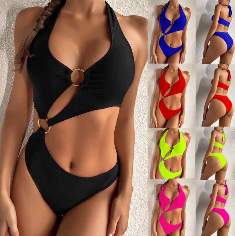 水着 ワンピース シンプルベーシックビキニ バンドゥ スイムウェア ワイヤービキニ ホルターネック ・・・