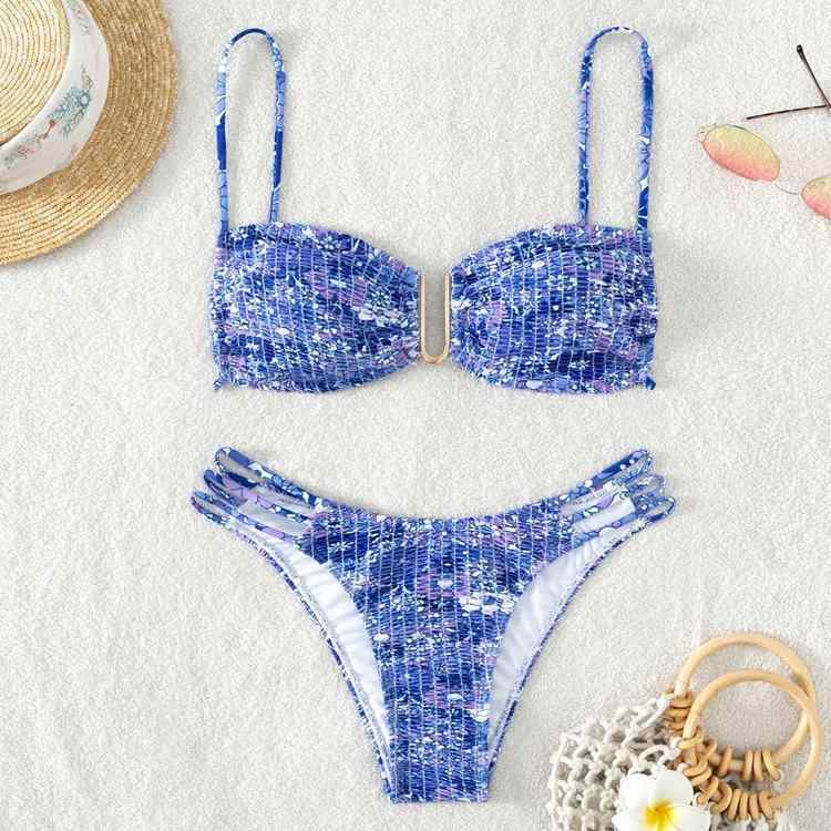 水着 レディース セクシー バンドゥ ビキニ 花柄 ハイウエスト セパレート 胸パッド付き ノンワイ・・・