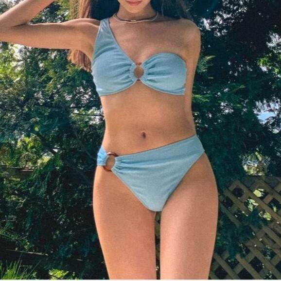 フロントリング リング 水着 ビキニ スイムウェア レディース バンドゥ ワンショル ノンワイヤー ・・・