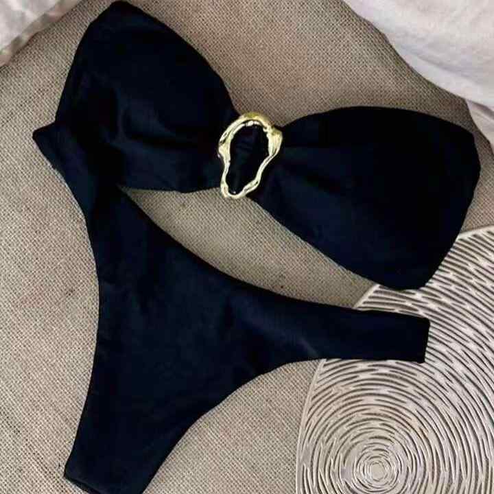 水着 レディース ノンワイヤー 胸パッド付き セパレート ビキニ バンドゥ 無地 セクシーデザイン ・・・
