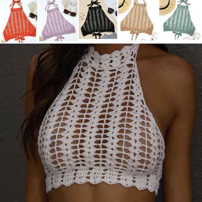 水着 レディース ビキニトップス 欧米風 ニット かぎ編み 手編み ホルターネック セクシー バック・・・