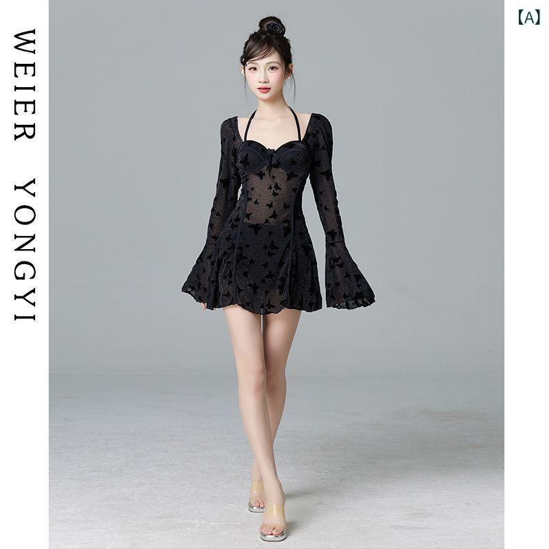 水着 レディース スイムウェア ワンピース 春夏 ブラック メッシュ 蝶柄 バンドゥ ストラップ付 ・・・