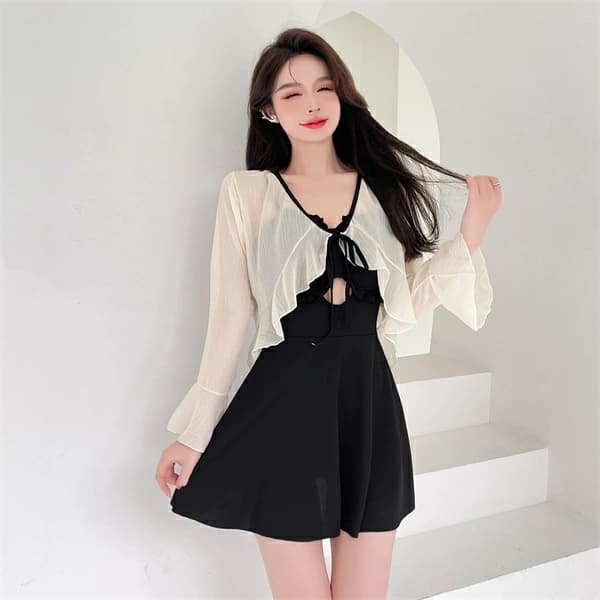 水着 レディース 2点セット 白 黒 タンキニ 体型カバー 韓国 可愛い お洒落 大人 女子 夏 か・・・