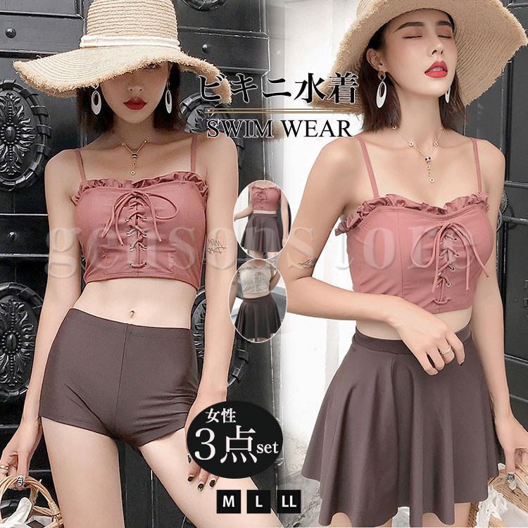 水着 レディース ビキニ バンドゥ 3点セット ワイヤー ショートパンツ スカート フレア タンキニ・・・