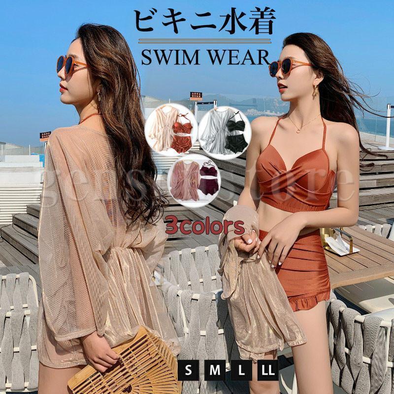 水着 レディース ビキニ 3点セット 体型カバー ラッシュガードス ママ水着 ミセス 小胸 バンドゥ・・・