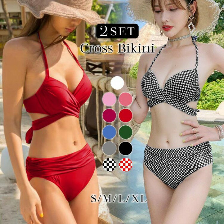 ビキニ 水着 レディース セクシーなクロスデザイン 水着 2点セット 高品質 みずぎ パッド付き ワ・・・