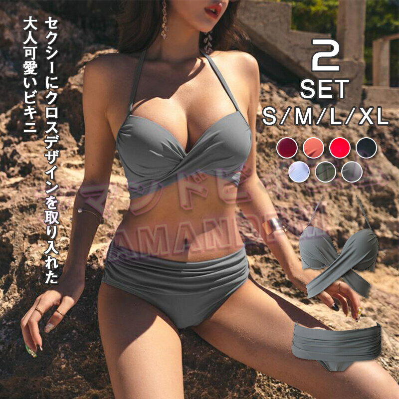 「楽天スーパーSALE」 2点セット レディース 水着 ビキニ セット クロスカシュクール バンドゥ・・・