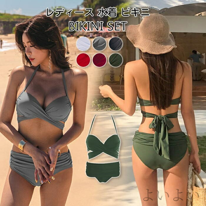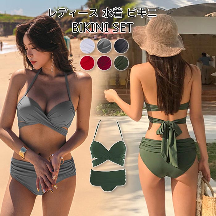 レディース 水着 ビキニ セット 体型カバー クロスカシュクール バンドゥ デザイン バスト盛れる ・・・