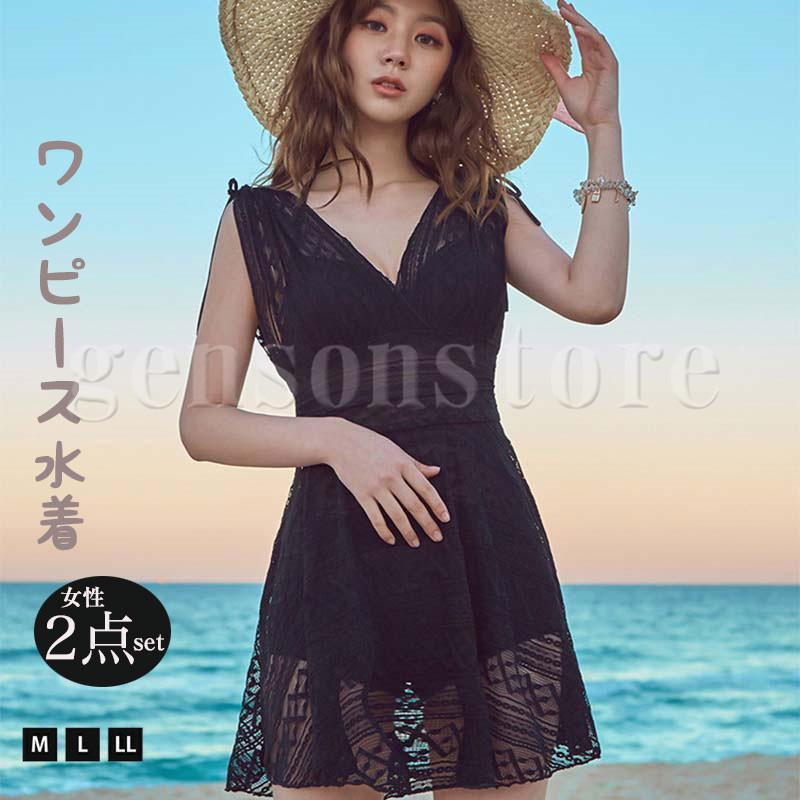 水着 体型カバー レディース ワンピース水着 短パン セパレート 2点セット レース ぽっちゃり ワ・・・