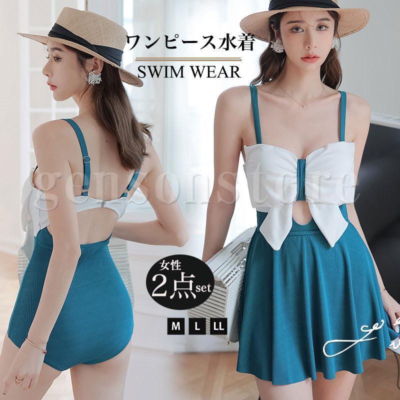 ワンピース水着 モノキニ レディース 体型カバー ワイヤー入り バンドゥビキニ フレア スカート 2・・・